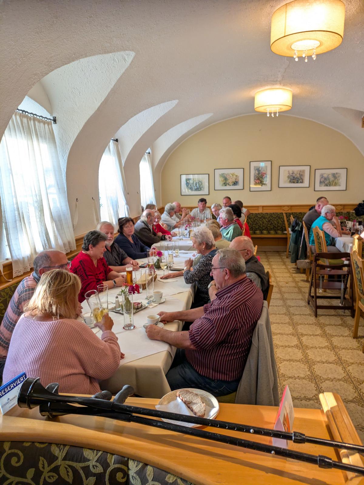 In lustiger Runde und in bewährter Reisebegleitung von Fa. Gschwendner Martin und Monika begaben wir uns auf die Tauplitz, trotz Bewölkung verlebten wir da schöne Momente. Mit dem Bummelzug konnten alle an der Führung teilnehmen. Das letzte Stück zum Ausblick zum See gings dann zu Fuß. Dann fuhren wir wieder zum Hollhaus zurück und konnten dort gut speisen und lustige Stunden verbringen. Um 14 30 mussten wir das Hollhaus verlassen und wir fuhren über den Pötschenpass zurück und kehrten zum Abendessen in ein nettes Lokal in der Nähe von Gmunden ein. Schön, dass so viele dabei waren!
